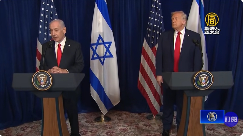 【新唐人亞太台 2025 年 12 月 30 日訊】美國總統川普周日進行對俄烏戰爭的和平斡旋,週一29號,川普接著與以色列總理尼坦雅胡(Benjamin Netanyahu)在佛州海湖莊園(Mar-a-Lago)會談。美以雙方聚焦,陷入僵局的加薩停火「第二階段」,並就加薩未來治理與安全架構,交換意見。川普表示,他希望以色列與巴勒斯坦武裝組織哈瑪斯之間的停火協議能盡早進入第2階段,但「必須解除哈瑪斯的武裝」,並補充表示,如果伊朗繼續發展彈道飛彈與核武計畫,他將不排除支持以色列再次對伊朗發動快速攻擊。
