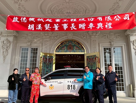 【新唐人亞太台 2026 年 01 月 05 日訊】新竹縣政府警察局所屬部分巡邏車輛已接近或超過使用年限,為維持第一線執勤品質與員警安全,警察局持續盤點實務需求,並積極整合各方資源,逐步推動巡邏車汰舊換新作業。被稱呼為「吊車大王」的啟德機械起重工程股份有限公司董事長胡漢龑,在了解警政勤務實際需求後,秉持回饋地方、關懷公共安全之公益精神,慷慨捐贈一輛全新巡邏車供竹東分局使用,以具體行動支持警政工作,展現企業善盡社會責任的正向力量。