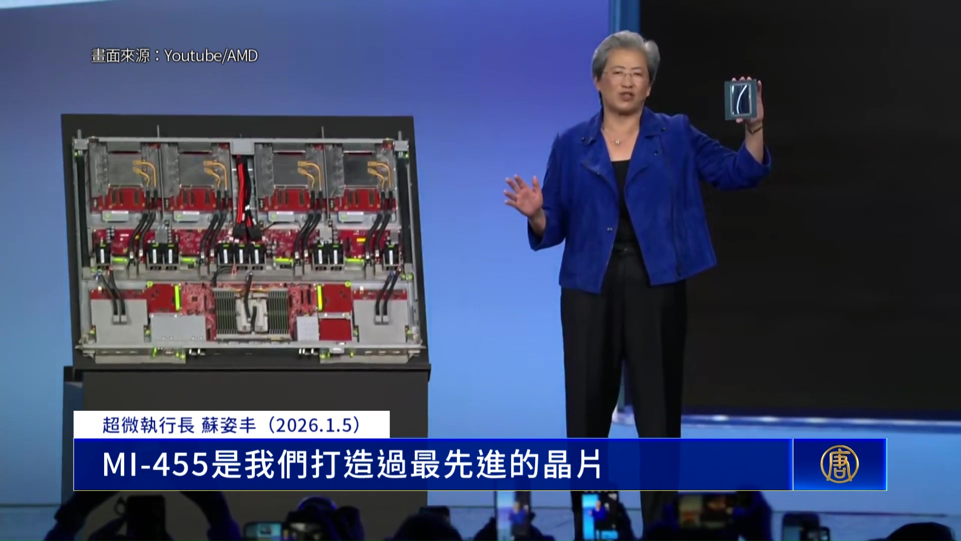 【新唐人亞太台 2026 年 01 月 06 日訊】除了黃仁勳以外,超微執行長蘇姿丰,也在同一天發表演說。蘇姿丰一口氣宣告,多項新產品,包括全球第一款、採用台積電,2奈米製程的處理器,要與輝達來比拚。