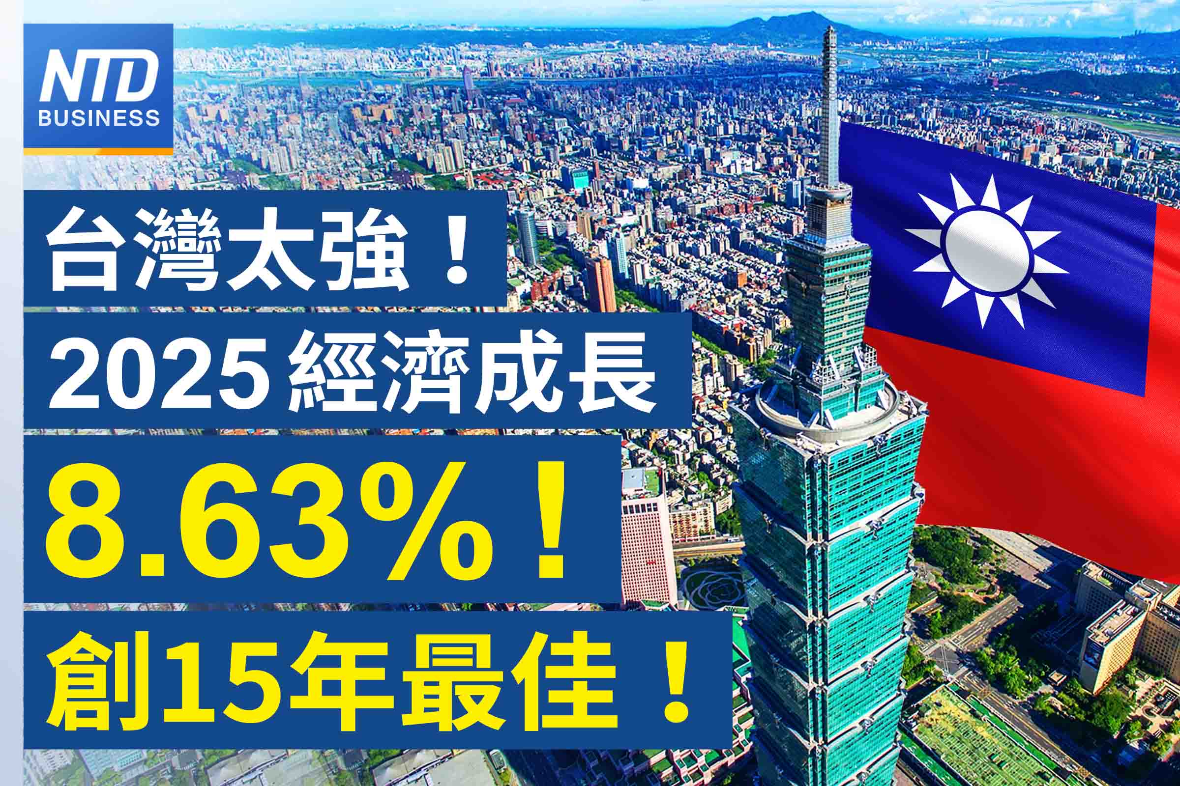 【新唐人亞太台 2026 年 01 月 30 日訊】2025年,台灣成長率12.68%,達8.63%,創下15年來最高水準。