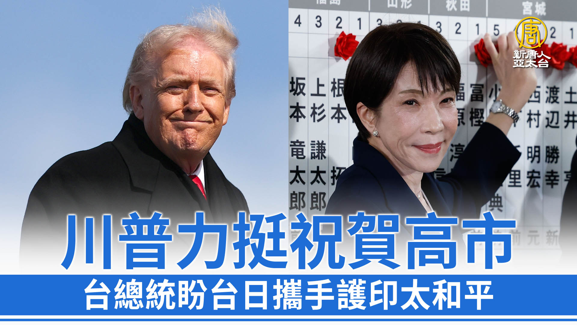 川普力挺祝賀高市 台總統盼台日攜手護印太和平