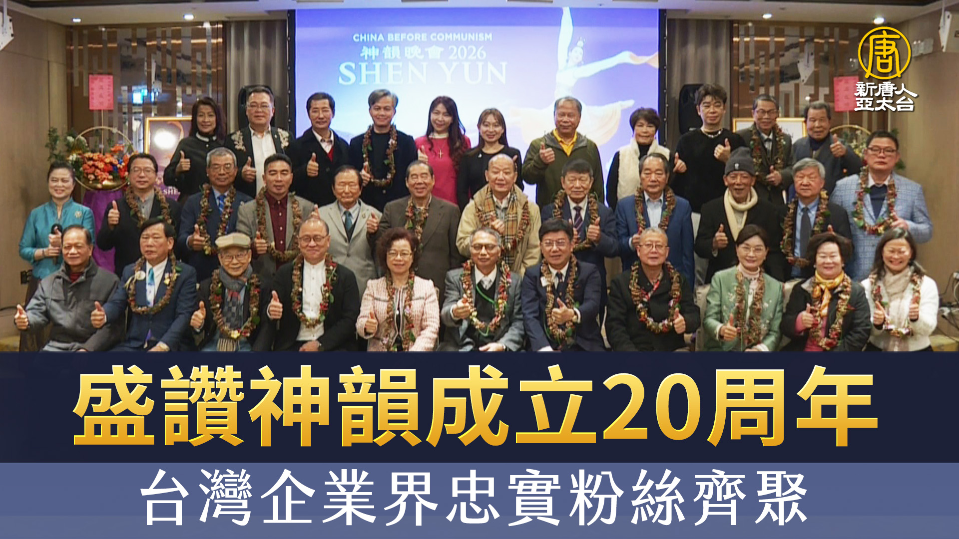 【新唐人亞太台 2026 年 02 月 10 日訊】美國神韻藝術團迎來成立二十周年,全球巡迴演出台灣主辦方特別舉辦歡慶晚宴,感謝多年來一路支持的忠實觀眾,來自企業界、社團與公益團體的嘉賓們齊聚一堂,感佩神韻帶來的美好。