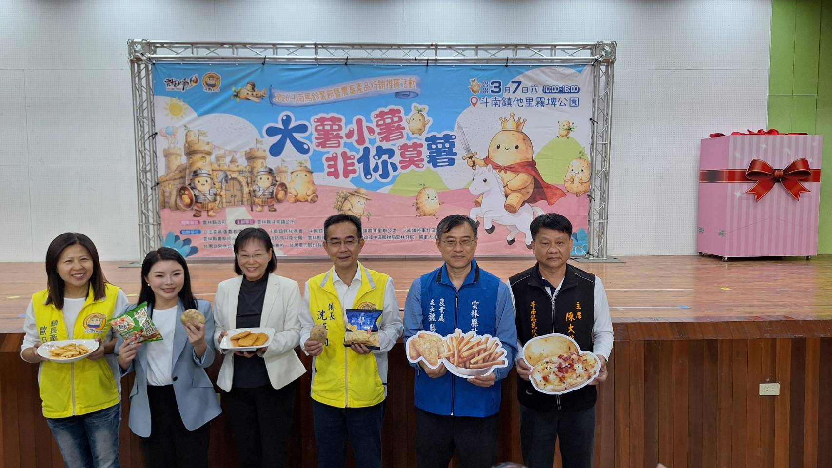 雲林斗南鎮舉辦 2026「大薯小薯非你莫薯」馬鈴薯節暨農畜產品行銷推廣活動(左起)斗南鎮長夫人歐月香、立法委員張嘉郡、雲林縣副縣長謝淑亞、斗南鎮長沈暉勛、雲林縣農業處長魏勝德、斗南鎮代表主席陳大華