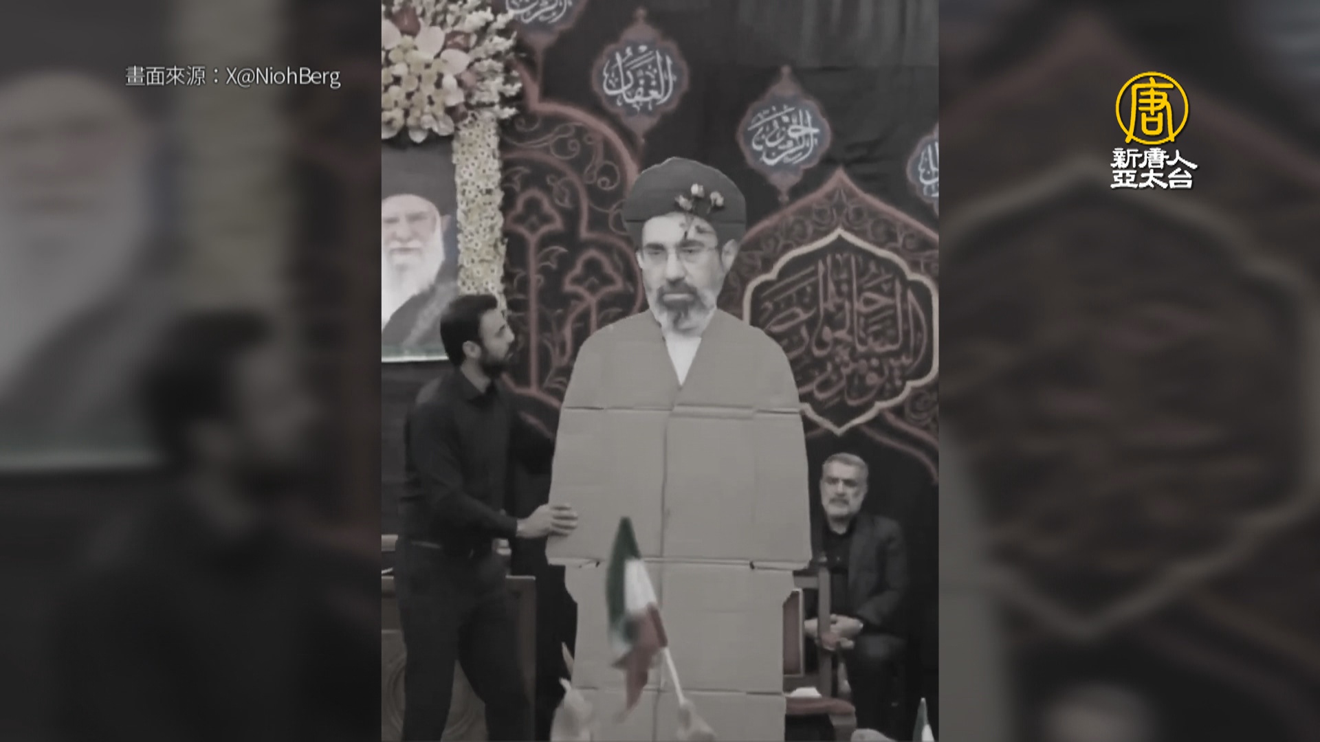 【新唐人亞太台 2026 年 03 月 12 日訊】繼續來關心,伊朗政權新任最高領袖穆吉塔巴(Mojtaba Khamenei)接班3天以來,持續隱身,至今還沒有公開露面,或是發表任何形式的談話。反而是在社群平台,熱傳一段影片,畫面據稱是政權新任領袖的宣誓效忠儀式,現場卻出現「紙板領袖」,紙板上放了穆吉塔巴的彩色照片,但在脖子以下,只有用紙板製作的簡陋身體,引發國外網友和伊朗網友輪番嘲諷。伊朗政權11日對外宣稱,這位新領導人目前「平安無事」。不過,有美國媒體披露,穆吉塔巴在2月28日美以第一天空襲當中,雙腿受傷,目前正藏身在高度保密地點。