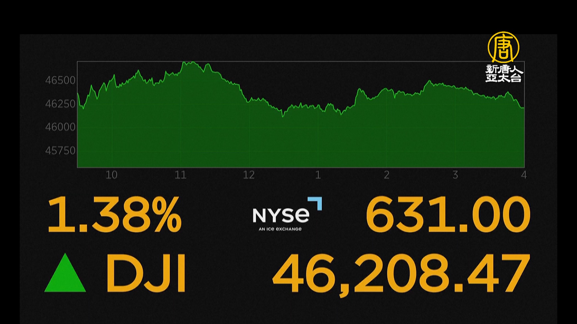 2025-10-21 07:56:47早安新唐人最新市場動態來看到,白宮首席經濟顧問哈塞特表示,美國政府關門「很可能在本週某個時候結束」,另外,美股即將迎來重量級財報和通膨數據,加上蘋果股價大漲,帶美股主要指數週一全面收漲,道瓊工業指數升超過500點,台積電ADR漲0.89%。