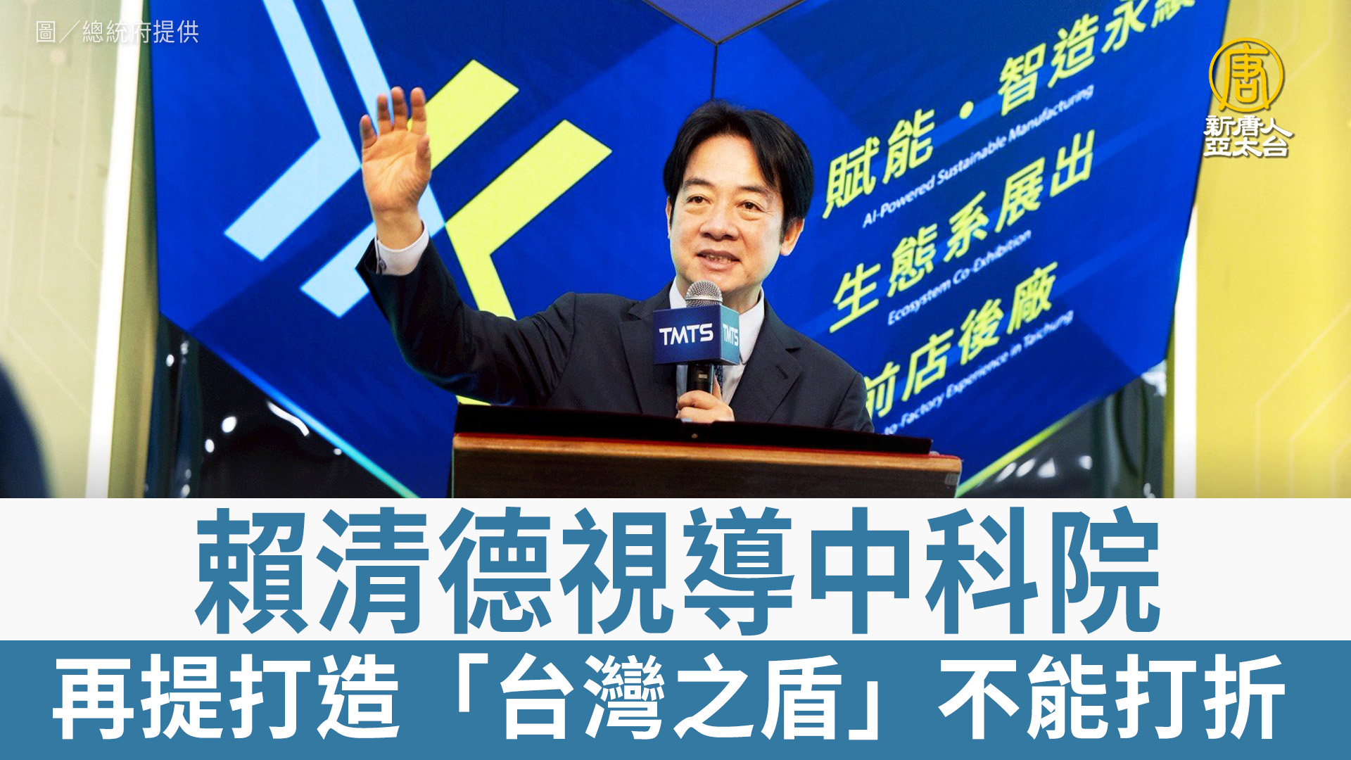 【新唐人亞太台 2026 年 03 月 27 日訊】中華民國總統賴清德今天視導國家中山科學研究院,觀看雄風與天弓飛彈組裝流程。賴清德表示,應對中共威脅,必須強化國家力量,包括國防、經濟韌性與民防,重申國防特別條例的目的,是落實國防自主、強化國防韌性。