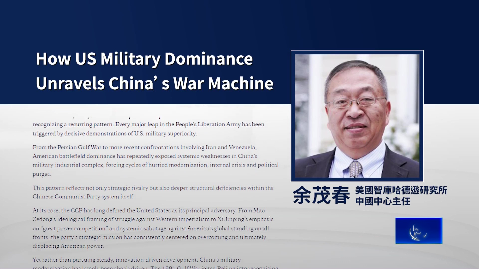 【新唐人亞太台 2026 年 04 月 01 日訊】美國智庫「哈德遜研究所」中國問題專家余茂春,近日發文揭露中共長期依賴模仿美軍技術,卻在材料與精度上無法突破,由此暴露出致命差距。但面對困境,中共不是想辦法提升技術能力,而是搞史達林式的大清洗,令人費解。