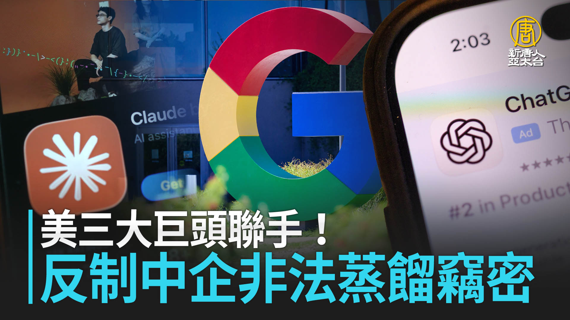 【新唐人亞太台 2026 年 04 月 07 日訊】再來看到,美中 AI 大戰進入白熱化階段!過去互為競爭對手的 OpenAI、Google 與 Anthropic,罕見共同合作。根據《彭博》報導,三大公司目標,一致指向了中國企業。原因就在於美方不滿,中國公司正在利用,所謂的「蒸餾技術」,來節省研發成本,形同「變相竊取」,共同採取反制手段。