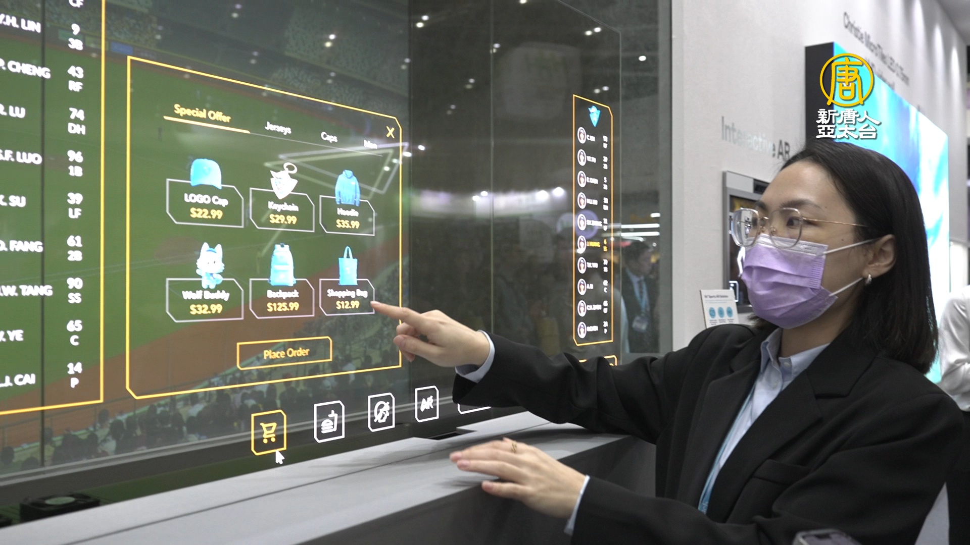 說中文的同時,顧客的面板上,自動呈現英文。透明Micro LED的應用不僅於此,面板大廠友達,也運用在運動賽事,與AR結合。VIP在專屬空間,藉由64吋Micro LED,能同時觀看球賽,球員介紹等資訊。智慧座艙的車窗,甚至到展覽主視覺,虛實面板的展演,宣告Micro LED技術,全面啟用。