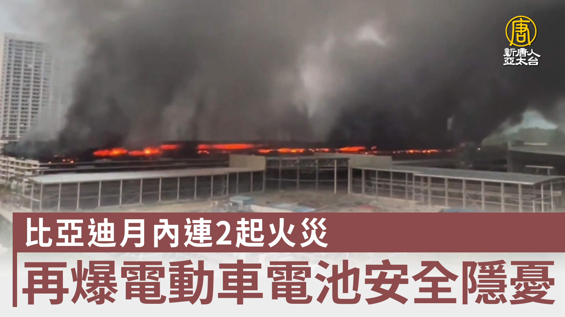 【新唐人亞太台 2026 年 04 月 15 日訊】中國電動車龍頭企業比亞迪,4月份發生二起火災,繼上週浙江嵊(州電池廠著火之後,周二(4月14日)凌晨,位於廣東深圳坪山的一處車庫,也發生恐怖火災,大火延燒6個小時。附近居民披露,該廠一直在做固態電池測試,存在安全隱患。