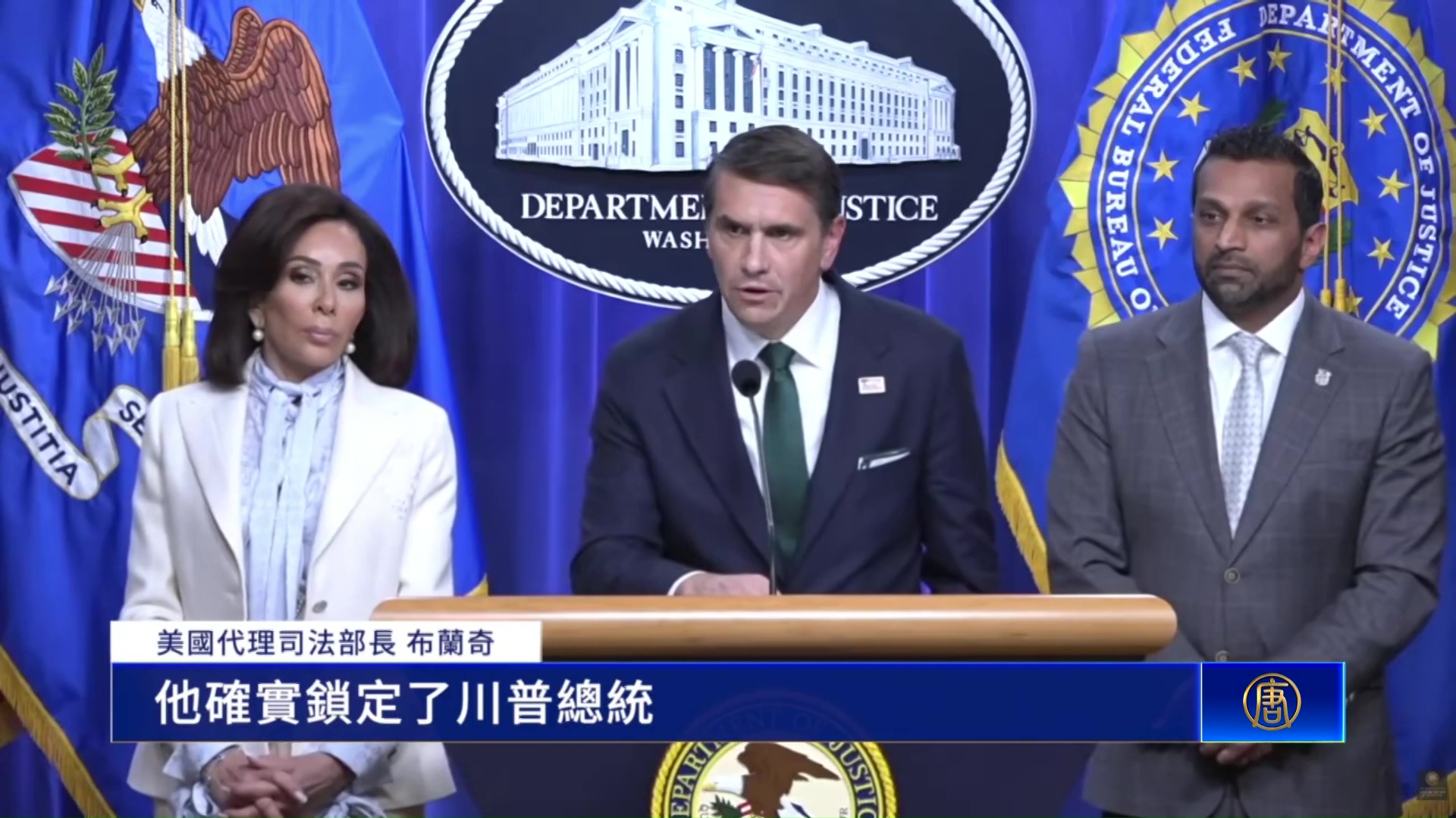 美國代理司法部長 布蘭奇:「他確實鎖定了川普總統,並且也鎖定了政府高層官員,這些都在宣言中有寫明。」