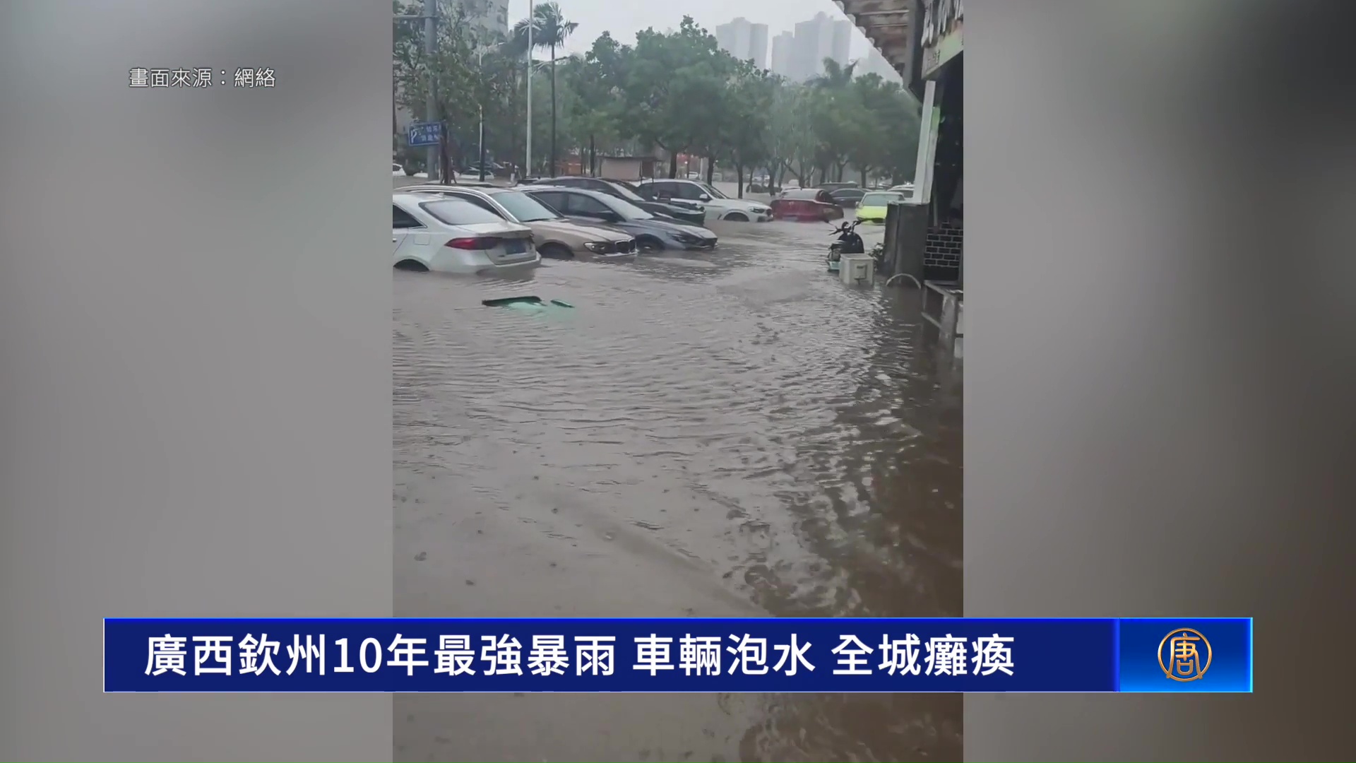 【新唐人亞太台 2026 年 04 月 28 日訊】新聞回來關注到是,中國的廣西欽州,週一遭遇了十年最強暴雨,特大降雨持續約12個小時。強降雨把道路,淹成河道,大量汽車泡水,市區交通幾乎癱瘓。有車輛被水流沖走,目前傷亡情況不明。