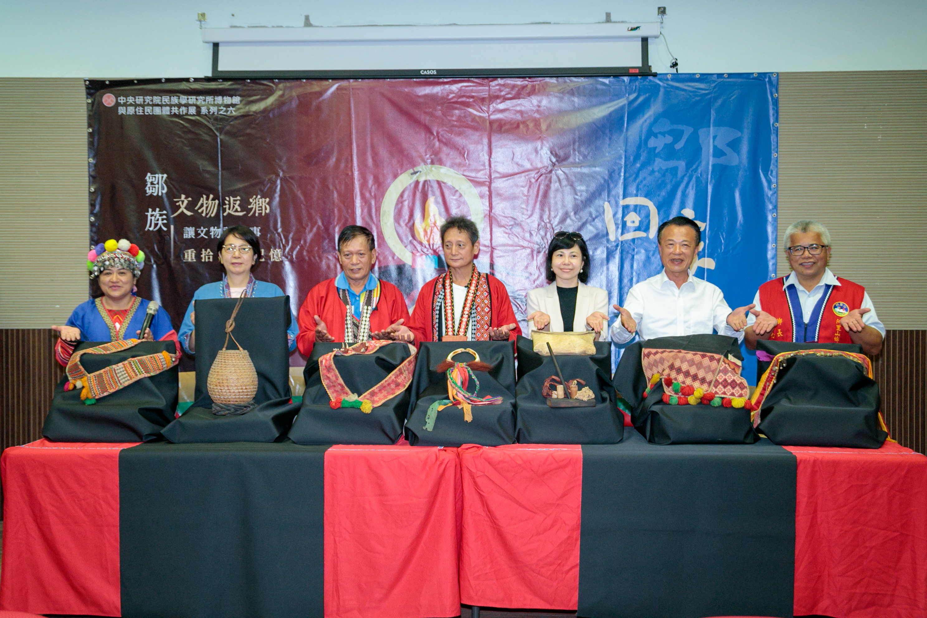 現場耆老演唱古謠、學生帶來歌舞表演,揭開活動序幕,這次鄒族文物返鄉展品,一共有45件,近日返鄉運抵嘉義達邦自然與鄒族文化中心,5月8日開展,呈現鄒族歷史、生活、信仰與工藝多元樣貌,更透過耆老口述記憶使物件重新連結人、文化與土地,也見證文物返鄉所帶來的驚喜與感動。