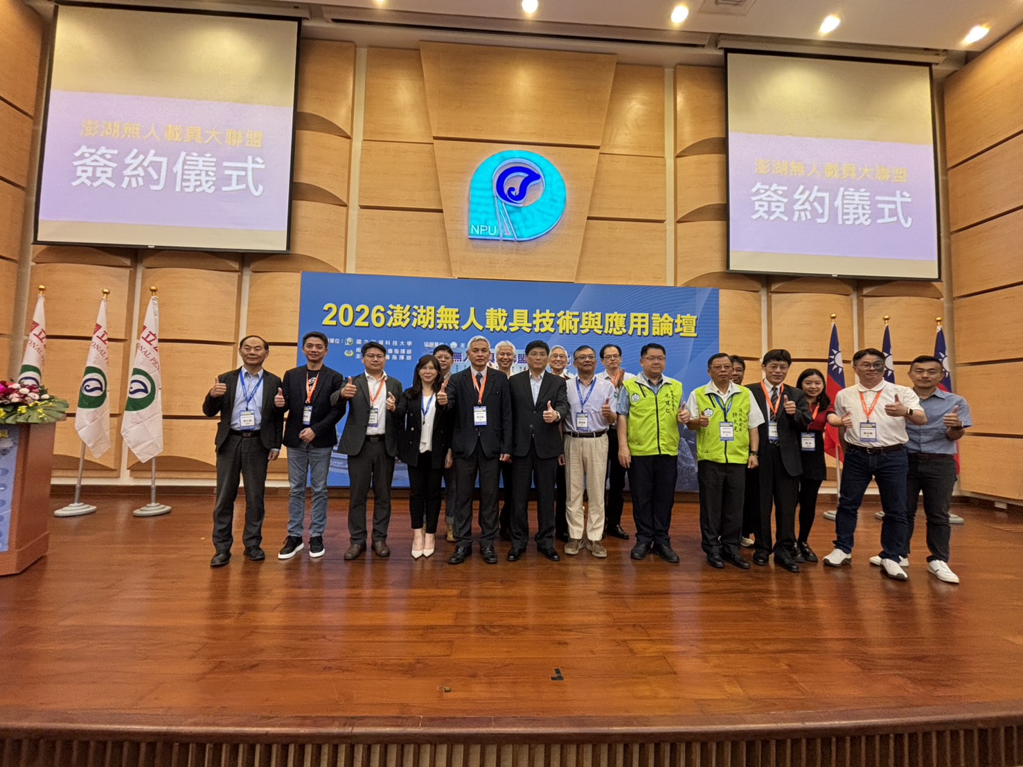 【新唐人亞太台 2026 年 04 月 29 日訊】由澎湖科技大學與成功大學主辦的「2026 澎湖無人載具技術與應用論壇」於今(29)日在澎科大盛大登場,會中簽署「無人載具大聯盟」,成功整合軍、產、官、學、研五大領域,宣布將澎湖打造為台灣智慧海洋科技應用的示範基地。