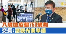 2022-03-16 12:57:22衛福部長陳時中日前表示,目前入境檢疫10天,未來朝「753」規劃,將檢疫時間逐步縮短,從檢疫7天、5天、3天到全免檢疫。交通部長王國材表示,樂見其成,會請觀光業做好準備,備妥遊程方案。