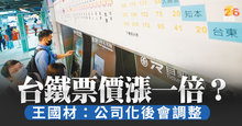 2022-07-13 20:55:14交通部積極推動台鐵公司化,票價調整情況也讓外界關注,傳出調整後票價可能翻倍。對此交通部長王國材,今天(13日)也有回應。