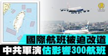 2022-08-04 12:51:35中共從今天(4日)中午開始,在台灣周邊6個海域軍演,形同封鎖台灣對外海空運輸,交通部表示每天共300個國際航班全受影響,上午國際航班行經台灣時,已開始避開相關空域。