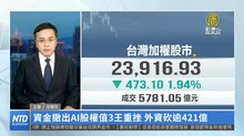 2024-08-06 17:18:29新聞一開始帶您關心國際金融市場,美國股市風波不斷,投資人擔心經濟衰退隱憂,加上科技股賣壓沉重,周一美國出現連續三天的恐慌性拋售,道瓊指數盤中一度下挫1200點,科技股為主的那斯達克,盤中重挫超過6%。指標公司蘋果收盤下跌近5%,英特爾再度重挫6%。亞洲股市今天表現不一,日圓漲幅收斂下,日股上漲10.23%,韓國股市止跌,台股方面,開盤強力反彈,儘管盤中一度再度翻黑,不過低階買盤進駐,指數呈現V型向上,加權指數終場上揚670點,收20501點,外資回頭買超,三大法人買超262億。