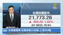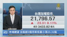 科技股疲弱 台股震盪尾盤翻紅小漲9點