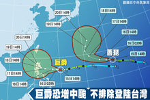 2015-10-18 20:02:28新聞頭條,帶您看到,第24號颱風巨爵,目前是中度颱風,預計星期三(21日)開始會逐漸影響台灣,氣象局提醒,巨爵可能跟東北風產生共伴效應,為北部、東半部地區帶來豪雨威脅。