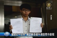 2015-10-19 20:31:41中國國家主席習近平今天啟程訪問英國,同一天,香港學民思潮召集人黃之鋒也接獲英國牛津辯論學會的邀請,前往英國6所知名大學,就香港的民主進程等議題進行交流。黃之鋒在當地時間19號晚上會在牛津大學進行首場公開演說,題目是「在香港爭取民主和自決」。這是他第二次和習近平在外國國事訪問期間 同在一國。另外,黃之鋒因考慮參選立法會向法院提出司法覆核,希望把參選年齡降到18歲,香港《信報》前主筆練乙錚公開表示支持。