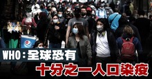 2020-10-06 20:28:08再來關心肺炎疫情最新情況,全球累計確診超過3千5百51萬人,1百04萬4千多人死亡。但中共、伊朗等國家,被認為嚴重低報數據。世界衛生組織估計,全球恐怕有十分之一人口已經染疫,遠高於官方數據的20倍。美國確診超過7百45萬8千多例、死亡21萬多人。印度新增6萬1千多人確診,達到6百68萬5千多例。俄羅斯新增1萬1千多起確診,累計達1百23萬7千多例。阿根廷確診超過80萬例,過去24小時多1萬1千多人染疫。菲律賓新增2千多起確診。印尼新增4千多起確診,是從9月30日以來單日新增最高人數。