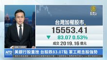 美銀行股重挫 台股跌83.07點 軍工概念股強勢