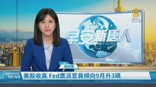 2022-08-19 07:03:08早安新唐人先來關心,最新市場動態,美股三大指數週四小幅收漲,道指漲0.06%,標普500指數漲0.24%,而台積電ADR則是漲0.19%。另外在升息步伐方面,週四聯準會鷹派官員布拉德表示,傾向9 月升息 3 碼,並稱現在判斷通膨已經觸頂還言之過早。