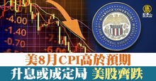 美8月CPI高於預期 市場憂Fed升四碼 美股齊跌