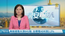 2022-08-19 07:03:08早安新唐人先來關心,最新市場動態,美股三大指數週四小幅收漲,道指漲0.06%,標普500指數漲0.24%,而台積電ADR則是漲0.19%。另外在升息步伐方面,週四聯準會鷹派官員布拉德表示,傾向9 月升息 3 碼,並稱現在判斷通膨已經觸頂還言之過早。