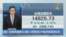 2022-09-02 17:16:01新聞一開始,帶您看到國際股市。中國疫情嚴峻,美國禁止超微、輝達出貨高階 AI晶片給中國,投資人信心觀望,美股四大指數收盤漲跌互見,道瓊收紅近150點,標普漲0.3%,終止連跌四天的頹勢。台股今天則是開低走低,終場下跌128.82點,失守14700點整數關卡,週線連二黑;台積電受大客戶超微、輝達影響,今天股價下挫,以485元作收,跌幅1.12%。