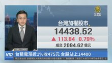 2022-08-17 17:05:29新聞一開始,帶您看到國際股市。美國零售大廠沃爾瑪、家得寶財報亮眼,激勵零售股,美股早盤走高,美國道瓊指數和標準普爾500指數週二上漲,科技股則下跌,導致那斯達克指數收黑。台股受美國科技股表現影響,電子族群雖然疲軟不振。但金融、傳產續攻,尾盤台積電黑翻紅,帶動指數終盤上漲44.88點、連續5個交易日收漲。收在15465.45點,成交值新台幣2145億元。
