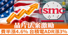 晶片法案激勵 費半漲4.6% 台積電ADR漲3%