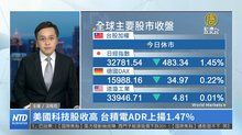 2023-07-14 07:03:10早安新唐人最新市場動態來看到,受惠於通膨降溫與穩健的企業財報,華爾街股市主要指數週四連續第4個交易日收高,道瓊上漲47點,台積電ADR漲1.21%。台積電昨天在台股表現,漲幅達1.21%,市值重返15兆元大關。