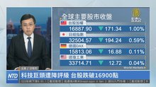 2023-06-27 17:07:48新聞一開始帶您看到國際股市,美股主指週一 (26 日) 收黑,華爾街接連調降科技巨頭股價評級,加上擔憂人工智慧熱潮衍生的風險,Google母公司Alphabet,評級遭下調至中性,特斯拉股價漲幅也可能暫時結束,此外俄羅斯動盪的消息,讓美股主要指數,週一 (26 日) 收黑。亞洲股市方面,因美股走跌,引發日本半導體等成長股跌勢,韓股同步走弱,市場趨向保守台股週二,在台積電震盪收黑,電子股走弱,加權指數跌破萬七大關,加上造紙、觀光、電機機械、航運等傳產股,同樣表現不佳,加權指數終場進一步跌破16900點及月線