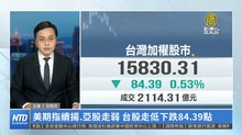 美期指續揚.亞股走弱 台股走低下跌84.39點