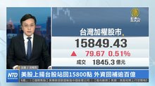 美股上揚台股站回15800點 外資回補逾百億