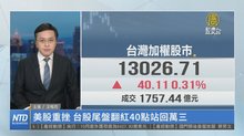 美股重挫 台股尾盤翻紅40點站回萬三