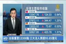 台股重登13300點 三大法人買超95.85億元