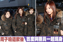 2016-01-18 12:43:24韓國女子團體TWICE台灣成員周子瑜在道歉事件後首度現身,根據推特粉絲團的照片,周子瑜與團員們一起參加錄影,團員緊緊勾著手,似乎也是在宣告,對周子瑜的力挺,粉絲們也紛紛關心她的狀況。