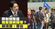 2018-03-09 20:14:08帶您來關心,旅遊業盛傳明年來台陸客團將會歸零,因為中國大陸今年開始不再換發來台領隊證。行政院長賴清德,今天在立法院備詢時說,這對台灣觀光一定會有影響,強調這是害台不是惠台。而觀光局澄清,中國將導遊證與領隊證兩證合一,做法並非針對台灣,認為陸客團歸零的說法,並不正確。