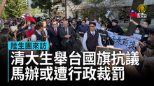 陸生團來訪 清大生舉台國旗抗議 馬辦或遭行政裁罰