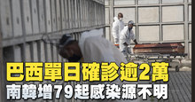 巴西單日確診逾2萬 南韓增79起感染源不明