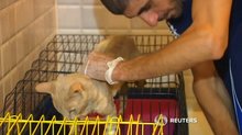 2016-06-17 22:37:17動物一籮筐〉貓咪受困電線桿 上演高空鋼索秀。雄獅失足落井 營救也要確保安全。小象跌落水溝斷腿 熱心居民伸出援手