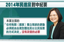 2015-12-29 20:07:12蔡英文,日前在辯論會上提出,會與中國求同存異,「九二共識」是選項,但不是唯一選項的說法。有綠營大老持續討論,還提出應該修黨綱、列新的決議文;不過,蔡英文今天直接表示,沒必要。