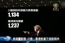 2016-05-11 12:34:39再來關心美國總統大選,共和黨與民主黨週二在西維吉尼亞州和內布拉斯加州 進行初選,截稿前的最新開票結果顯示,川普和桑德斯分別以76%和51%的得票率贏得西維吉尼亞州的初選。立刻將時間交給記者李大宇。