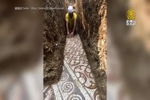 公元3世紀「古羅馬地磚」出土 馬賽克花紋像新的