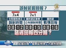 2016-07-04 20:12:39再來看到,國防部今天到立法院報告,卻在報告書中,修改飛彈誤射時間為8點12分,整整比當天國防部公布時間少了三分鐘,不過國防部說,是配合監視器時間才修改,究竟是延遲回報,還是機器時間落差,立委要求,查明真相。