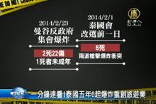 2014-01-19 21:19:43泰國反政府示威活動今天(19日)再傳爆炸事件,反政府抗議人士的營地勝利紀念碑遭炸彈攻擊,造成28人受傷,其中7人傷勢嚴重。