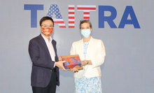 2021-09-02 17:45:32AIT處長孫曉雅1日拜會貿協董事長黃志芳,雙方就台美經貿議題及未來貿協在美國的拓銷活動進行交流,黃志芳也提出布局美國行動方案,包括在美國舉辦台灣形象展,以及深化台美供應鏈聯合小組平台合作關係。
